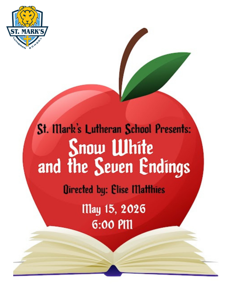Join us on May 15th, 2026, for our spring performance night! Selected 3rd-8th Graders will be performing the play “Snow White and the Seven Endings.” There will be popcorn, snacks, and drinks available for purchase at the performance as well.